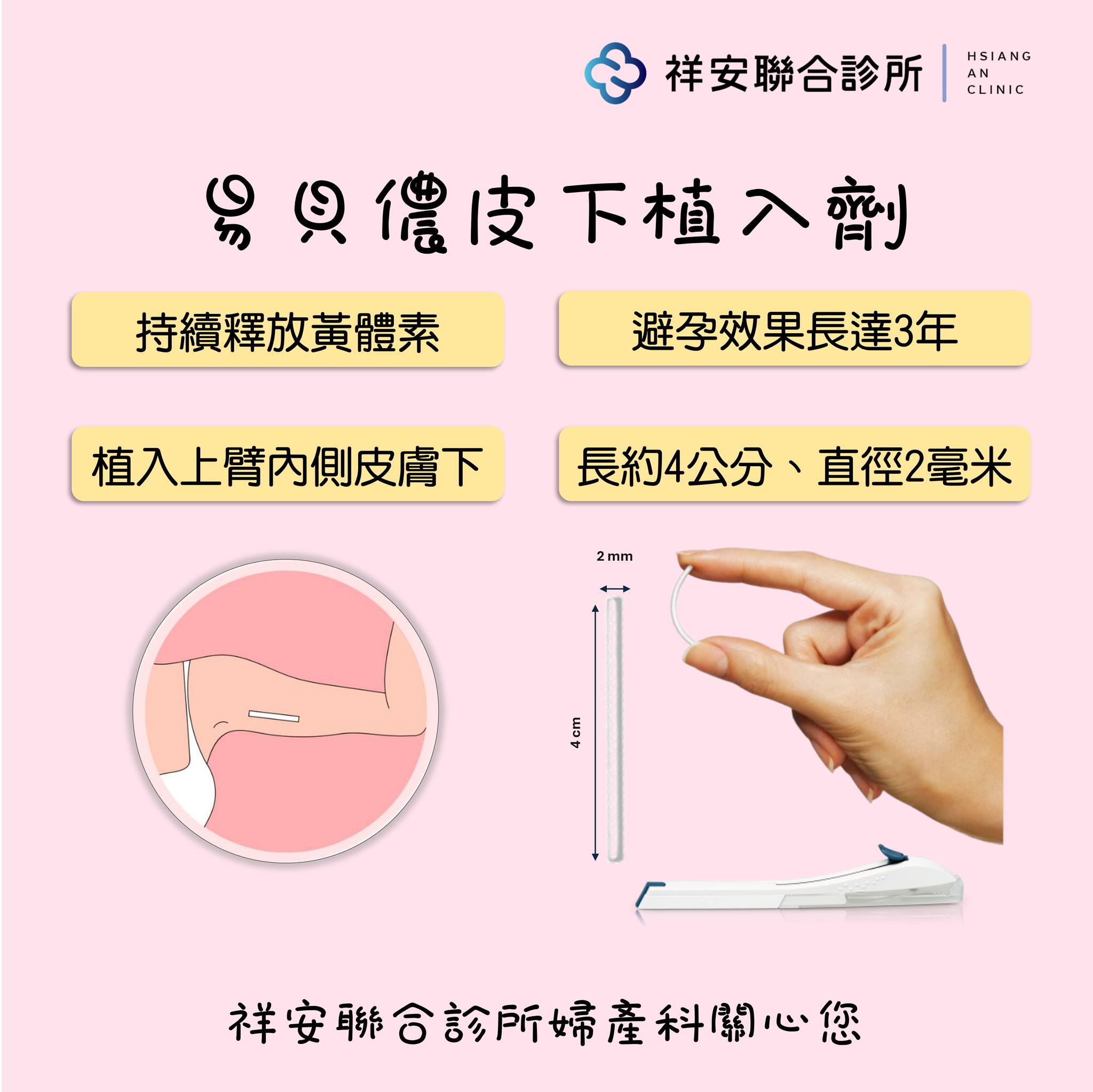 由婦產科醫師植入上臂皮下,過程快速、安全