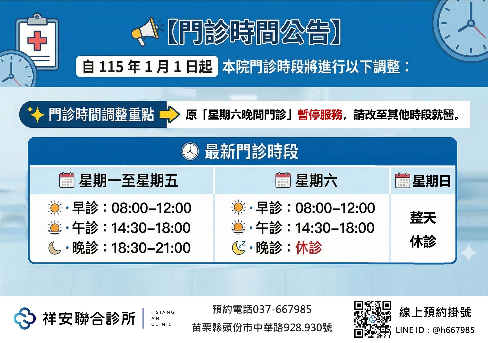 115年起【門診時間調整公告】